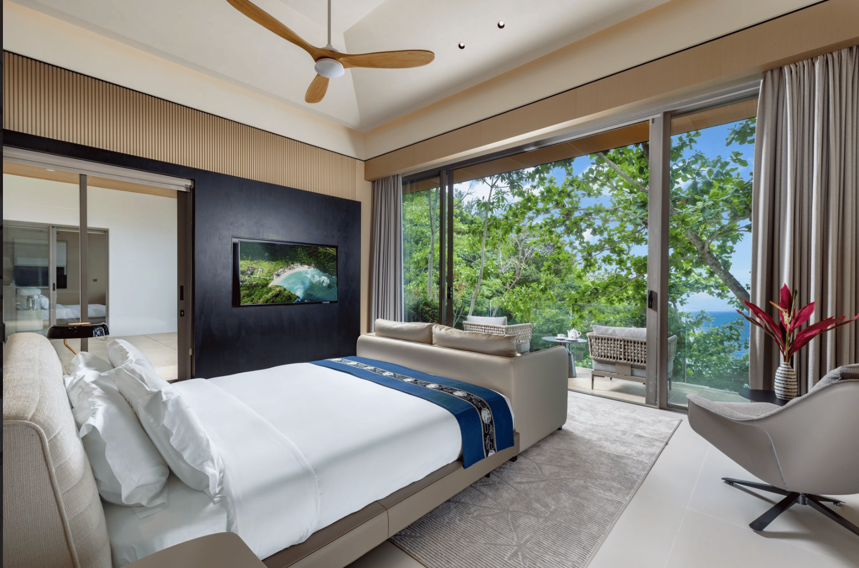 Elegant Thai-inspired design and ensuite bath with garden views.